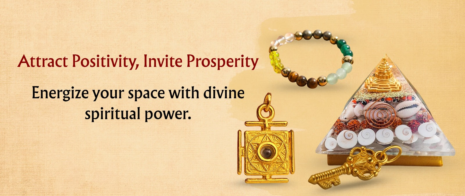 Each item in this sacred collection serves a unique purpose: from attracting wealth and prosperity with Shree Yantra and Lakshmi figurines to providing protection and positive energy through Rudraksha pendants, orgonite pyramids, and engraved pendants like the Shivaji Maharaj.